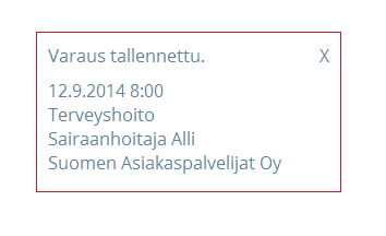 Kun varaus on tehty, siitä jää ilmoitus näkyviin ja voidaan siirtyä tekemään seuraavaa varausta.