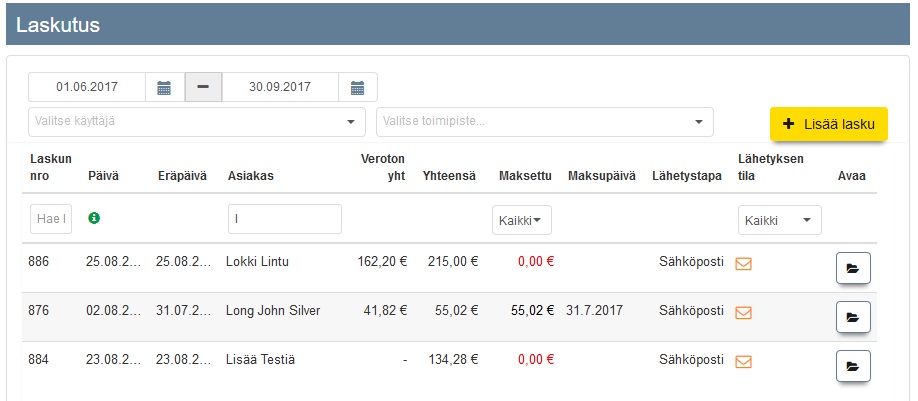 Laskutusominaisuudet