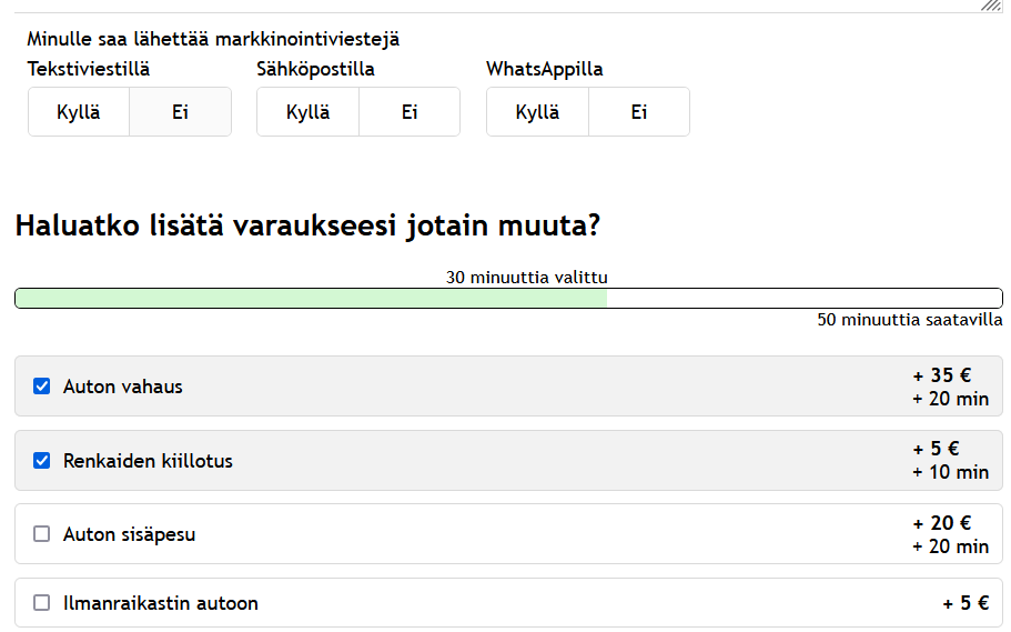 Internet-ajanvarausjärjestelmän asiakaspuolen varaussivulla asiakkaalle on nyt myös mahdollista rastittaa varauksen j...