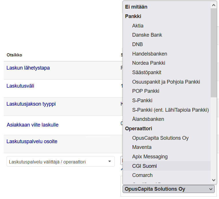 Ajas-laskutusohjelmistosta löytyy valmis lista eri verkkolaskutusoperaattoreista, jossa on eritelty pankkiverkossa ja operaattoriverkossa toimivat palvelut. Joissakin operaattoriverkon palveluissa tulee huomioida, että välittäjätunnukseen tulee DABAFIHH, mikäli sinne lähetetään lasku pankkiverkon kautta. Verkkolaskuja tehtäessä täytyykin olla tietoinen mitä kautta niitä itse lähettää.