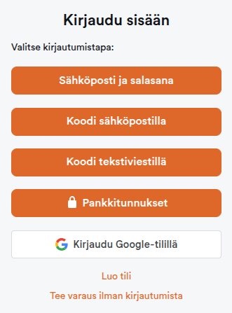 Google-kirjautuminen ei edellytä että järjestelmästä löytyy valmis asiakaskortti kyseiselle sähköpostille. Uusi asiakaskortti luodaan tarvittaessa samalla kun varaus luodaan. Muilta osin kirjautuminen ja järjestelmän käyttö toimii samoin kuin tavallinen kirjautuminen sähköpostilla ja salasanalla.